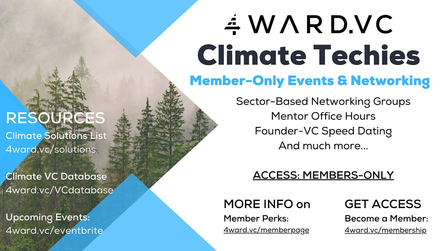 PS. 4WARD.VC's "Partner in Clime" Accelerator and The Startup Tank Climate Investor Pitch Show are always looking for great early stage climate deal flow and would love it if you'd pass along interesting companies